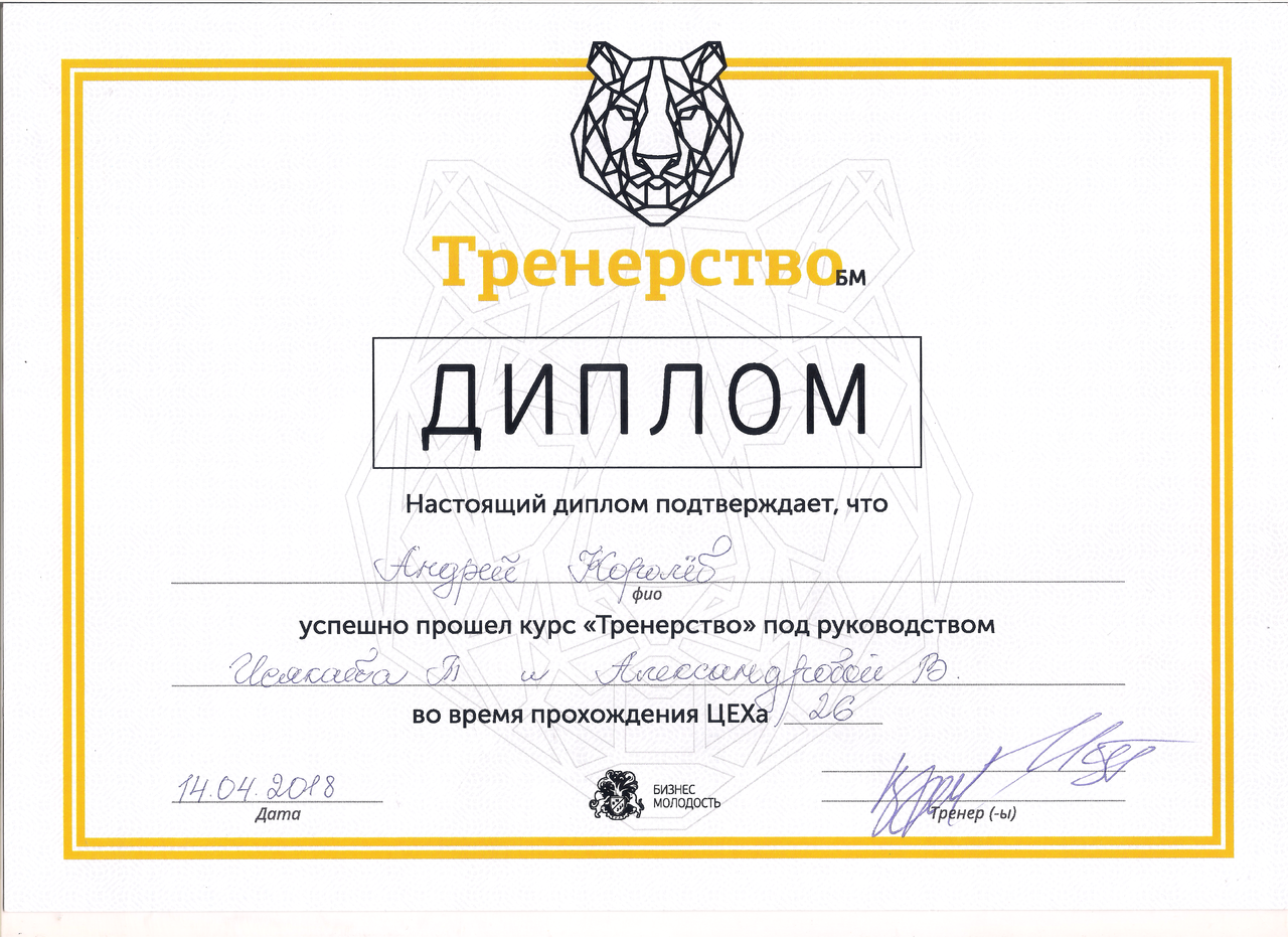 Тренерство Диплом Королев